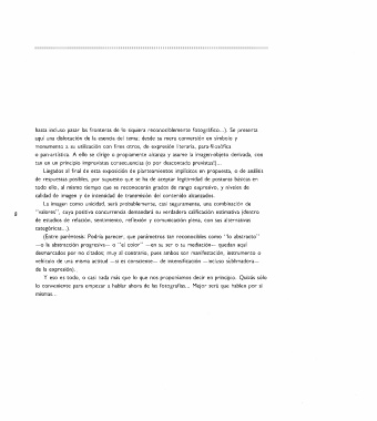hasta incluso pasar las fronteras de lo siquiera reconociblemente fotográfico ... ). Se presenta