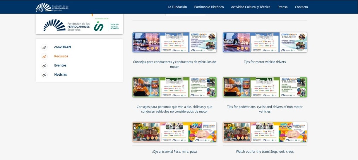 La Fundación de los Ferrocarriles Españoles presenta nuevos materiales del proyecto ‘conviTRAN - Modelo de convivencia de movilidad segura: la ciudad con tranvías’. Son tres documentos divulgativos concebidos para distintos grupos sociales y encaminados a potenciar espacios seguros en torno a los tranvías disponibles, que se encuentran ya en la web del proyecto, desde donde se pueden descargar.