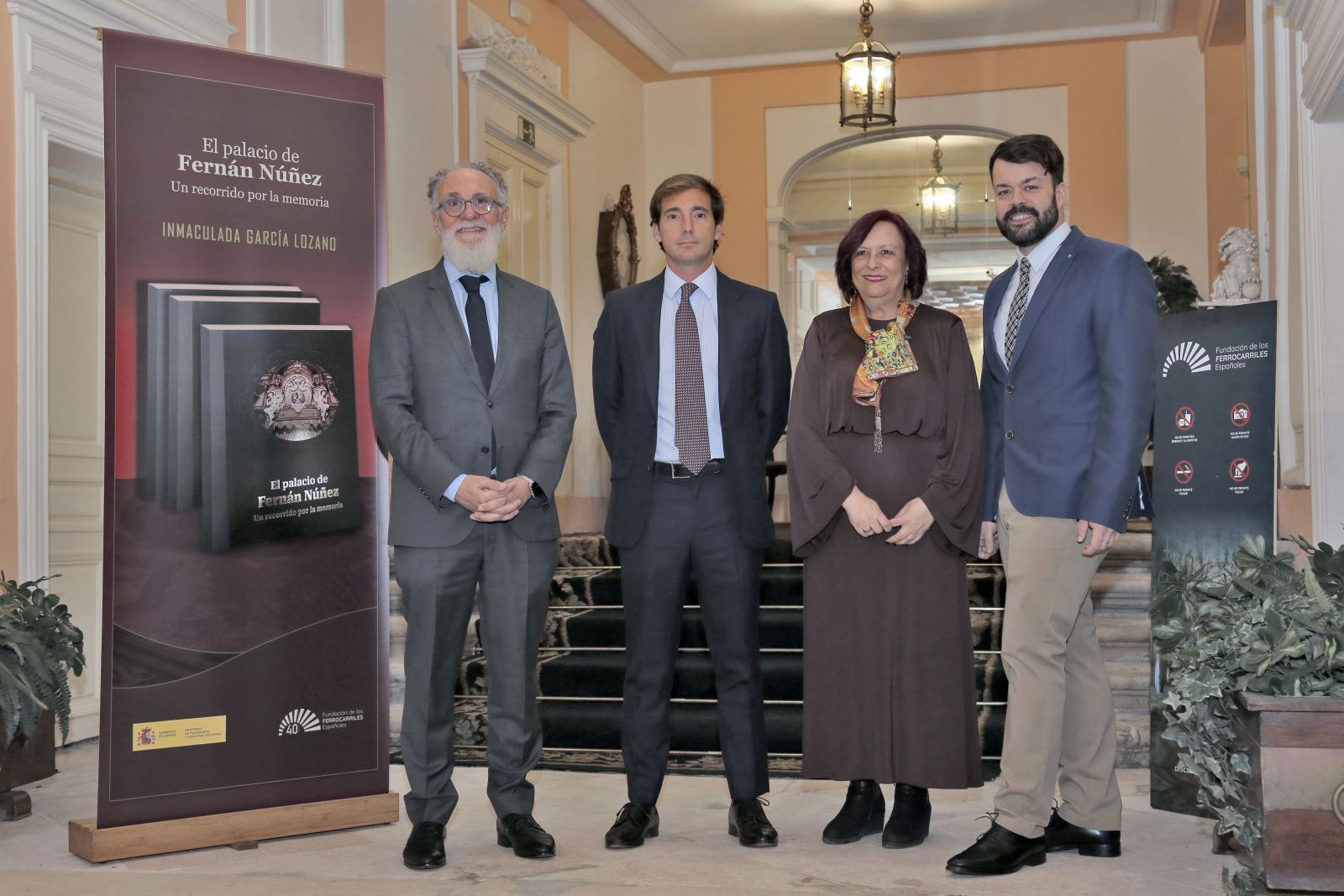 Ayer se presentó en la Fundación de los Ferrocarriles Españoles el libro El Palacio de Fernán Núñez: un recorrido por la memoria, de Inmaculada García Lozano, que fue conservadora del palacio hasta 2021. En la presentación participaron, junto a la autora, el director gerente de la Fundación, José Ramón Sempere Vera, y el actual conservador, Pablo García Lumbreras. Cerró el acto el presidente de Renfe y de la Fundación, Álvaro Fernández Heredia.
