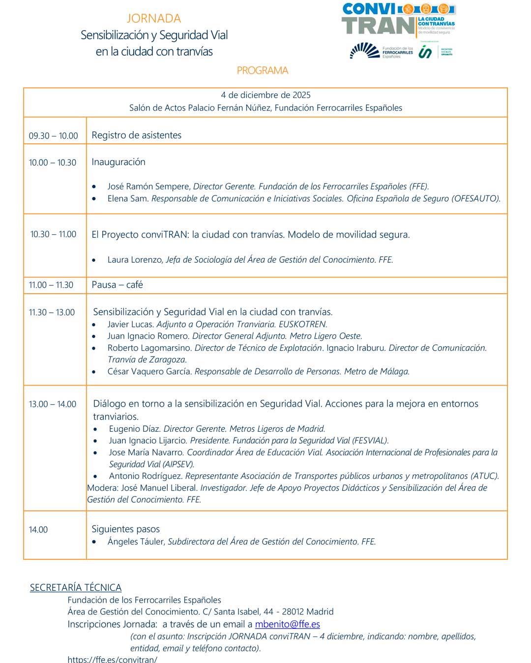 PROGRAMA Jornada. Sensibilización y Seguridad Vial en la ciudad con tranvías. Madrid, 4 de diciembre de 2025