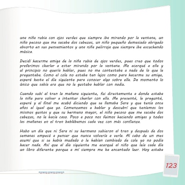 pequeños. En el tren había sólo cinco personas que pasaran ese filtro: un hacer nada. Así que al día siguiente me acerqué al niño que leía cada día