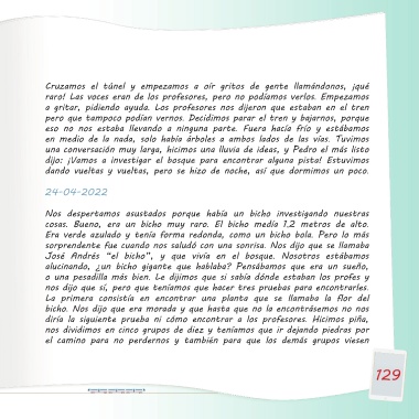Nos levantamos a investigar un poco, recogimos y nos fuimos volvimos dijo: ¡Vamos a investigar el bosque para encontrar alguna pista! Estuvimos