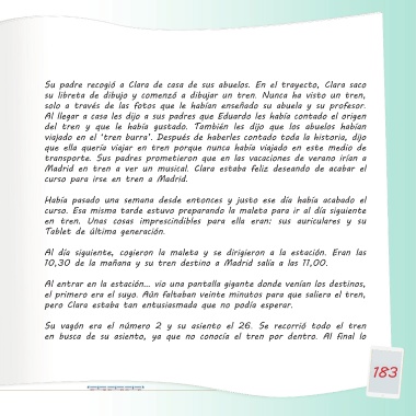 en avión; pero nunca había ido en tren. Madrid en tren a ver un musical. Clara estaba feliz deseando de acabar el