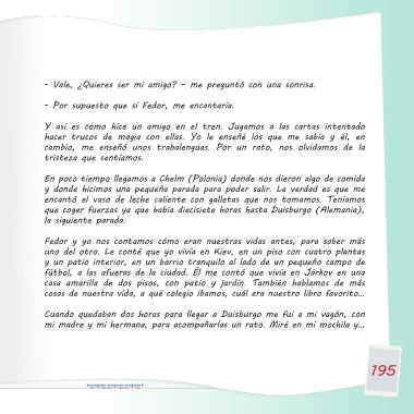 vagón. Cuando entré en el vagón número ocho, vi que era exactamente igual cambio, me enseñó unos trabalenguas. Por un rato, nos olvidamos de la