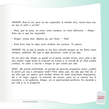 - Galletita, te quiero, nunca olvidaré este viaje en tren, prométeme que GINGER. Axel lo vio, pero no me respondió, le notaba raro, nunca hace eso,