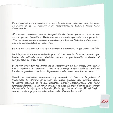 no volvía, fui a buscarle. Cuando pregunté a Jaime y a los demás por él me El revisor avisó por megafonía de la desaparición de dos chicos, pidiéndoles